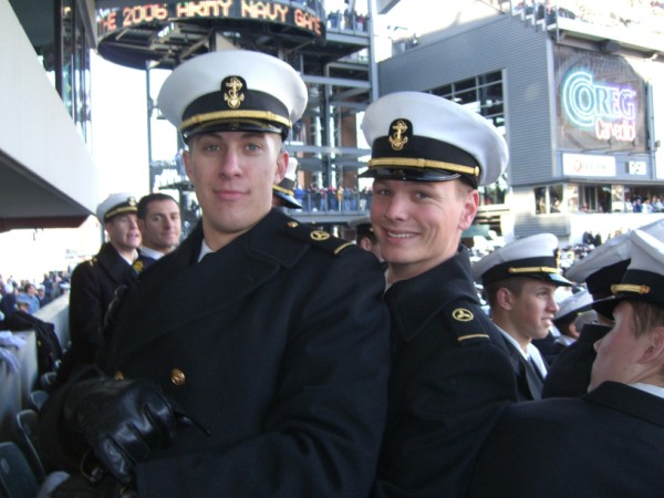 ![]() Kent Nygren '07 and Reed Kobernik "07 attending the Army-Navy game. Midshipmen Attend