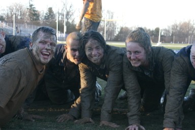 Jennifer Swanson '09 doing push-up during